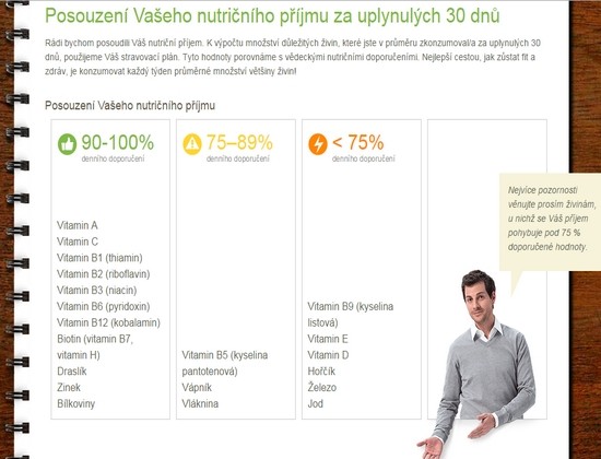 že program za mne počítá nejen příjem energie, vitamínů a živin, ale také poskytuje zpětnou měsíční analýzu živin, vitamínů a stopových prvků, což mi žádný nutriční specialista nespočítá.