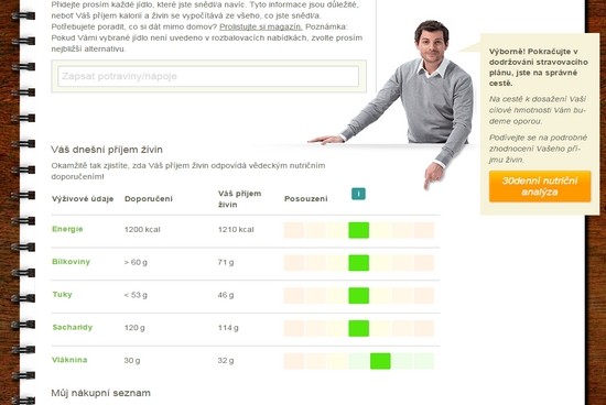Hned pod jídelníčkem je krásně barevná tabulka, na které vidím, kolik živin jsem za celý den snědla. Dnes jsem byla na obědě u babičky a dala si švestkové knedlíky. Byly výborné. Akorát mi na večeři zbyla samotná zelenina, protože tuků i cukrů bylo za celý den už dost. Ale vzhledem k tomu, že ji mám ráda, to bylo v pohodě.